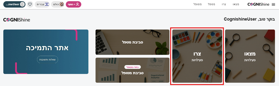 לחצו על “צור פעילות” כדי לפתוח את הסטודיו ולעצב פעילויות מותאמות אישית.