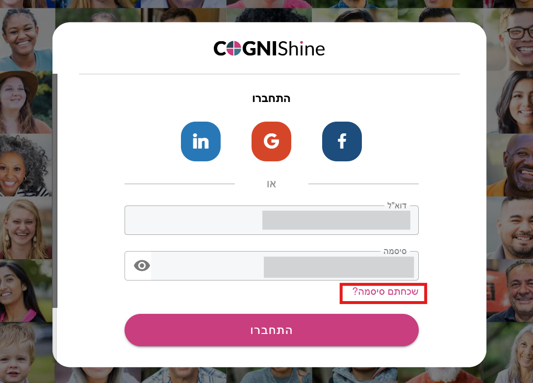 בעמוד ההתחברות הראשי, לחצו על "שכחתם סיסמה?"