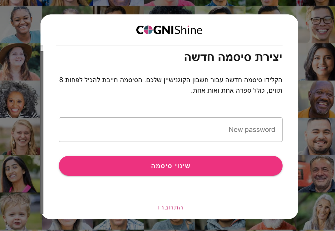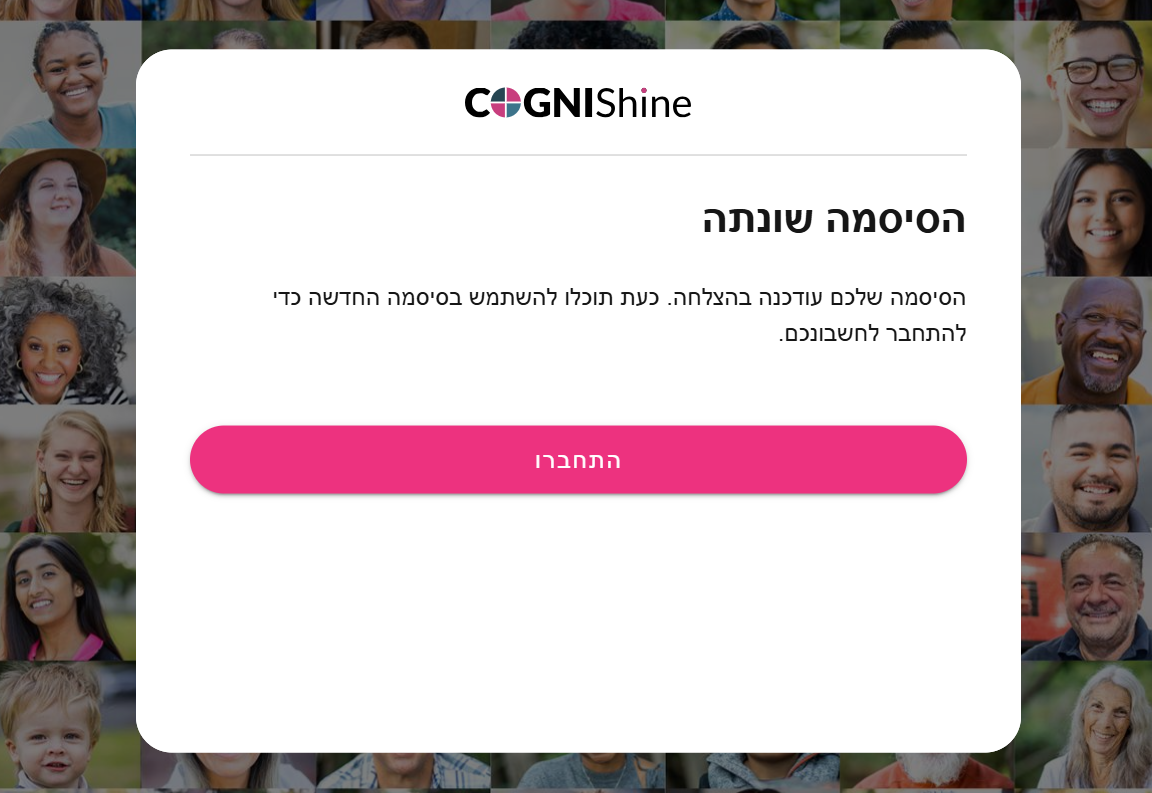 כעת תוכלו להתחבר לחשבון באמצעות הסיסמה החדשה שלכם.