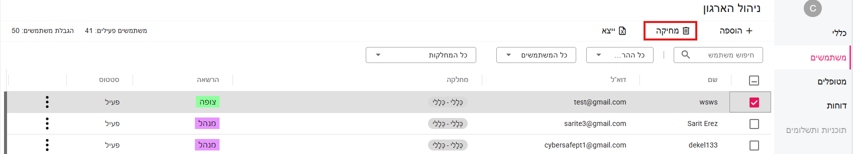 מחיקת משתמשים