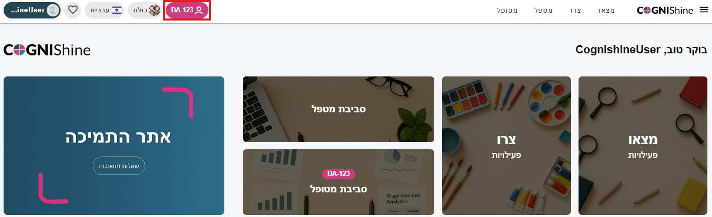 בחלק הורוד בסרגל העליון תוכלו לראות את המטופל הנוכחי.